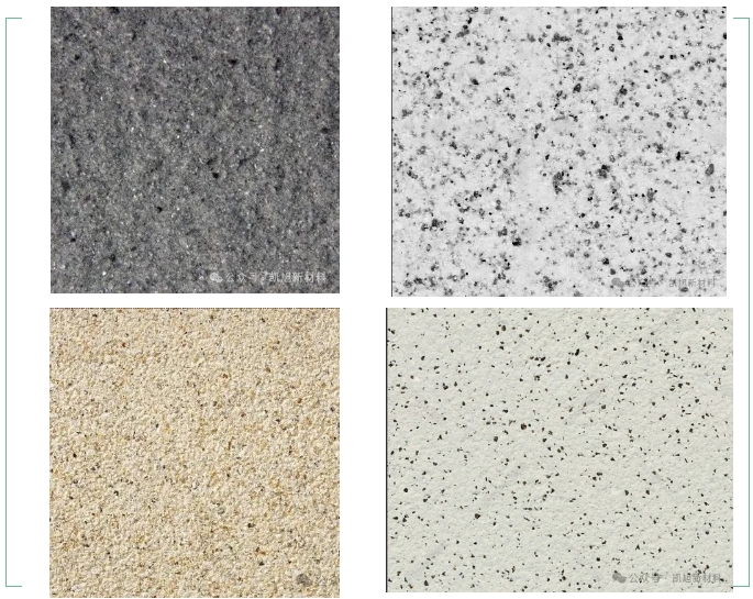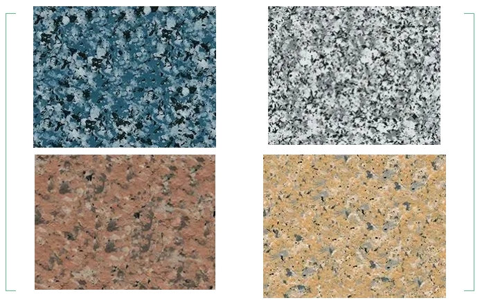 ① 色彩局限  真石漆的色彩、造型實現(xiàn),主要憑借不同顏色及不同粒徑 (大小)的天然彩砂來實現(xiàn),不能模仿花崗巖的塊狀紋理